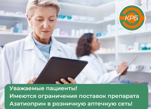 Мария Кривенко2026-04-09 12:07:492026-04-09 12:07:49Уважаемые пациенты! Имеются ограничения поставок препарата Азатиоприн в розничную аптечную сеть!