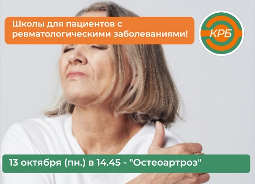 13 октября 2025 г. (пн.) в 14.45 в КРБ им. В.А. Насоновой состоится Школа для пациентов на тему ОСТЕОАРТРОЗ.