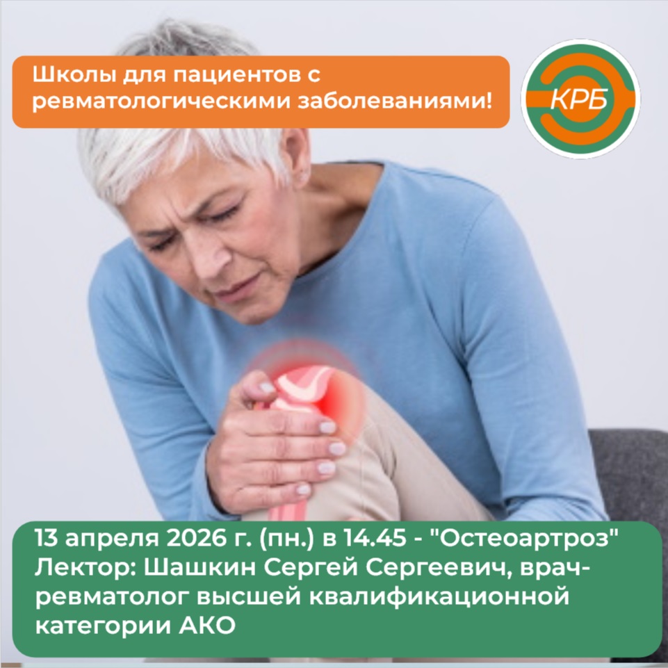 Приглашаем вас принять участие в Школе для пациентов на тему «Остеоартроз», которая состоится 13 апреля 2026 г. в 14.45.