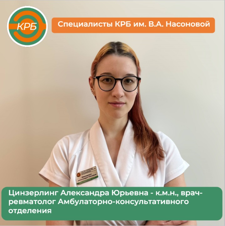 Сегодня в рамках рубрики «Знакомство со специалистами КРБ им. В.А. Насоновой» мы хотим рассказать о враче-ревматологе Амбулаторно-консультативного отделения, к.м.н. Цинзерлинг Александре Юрьевне.
