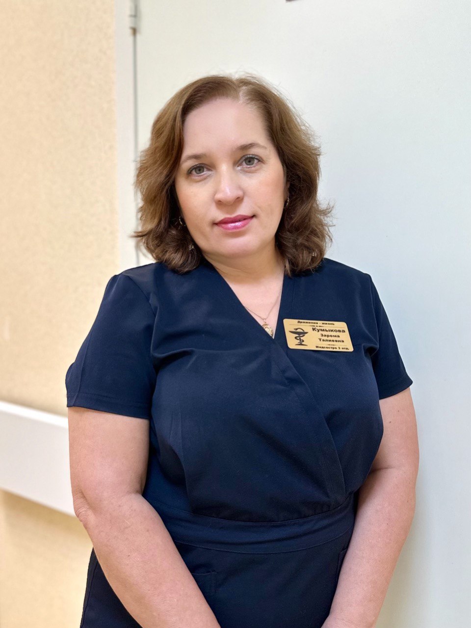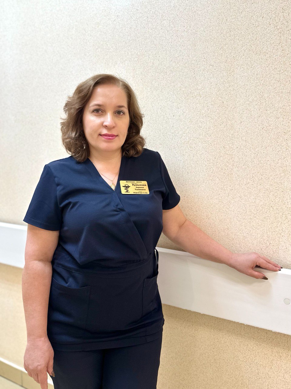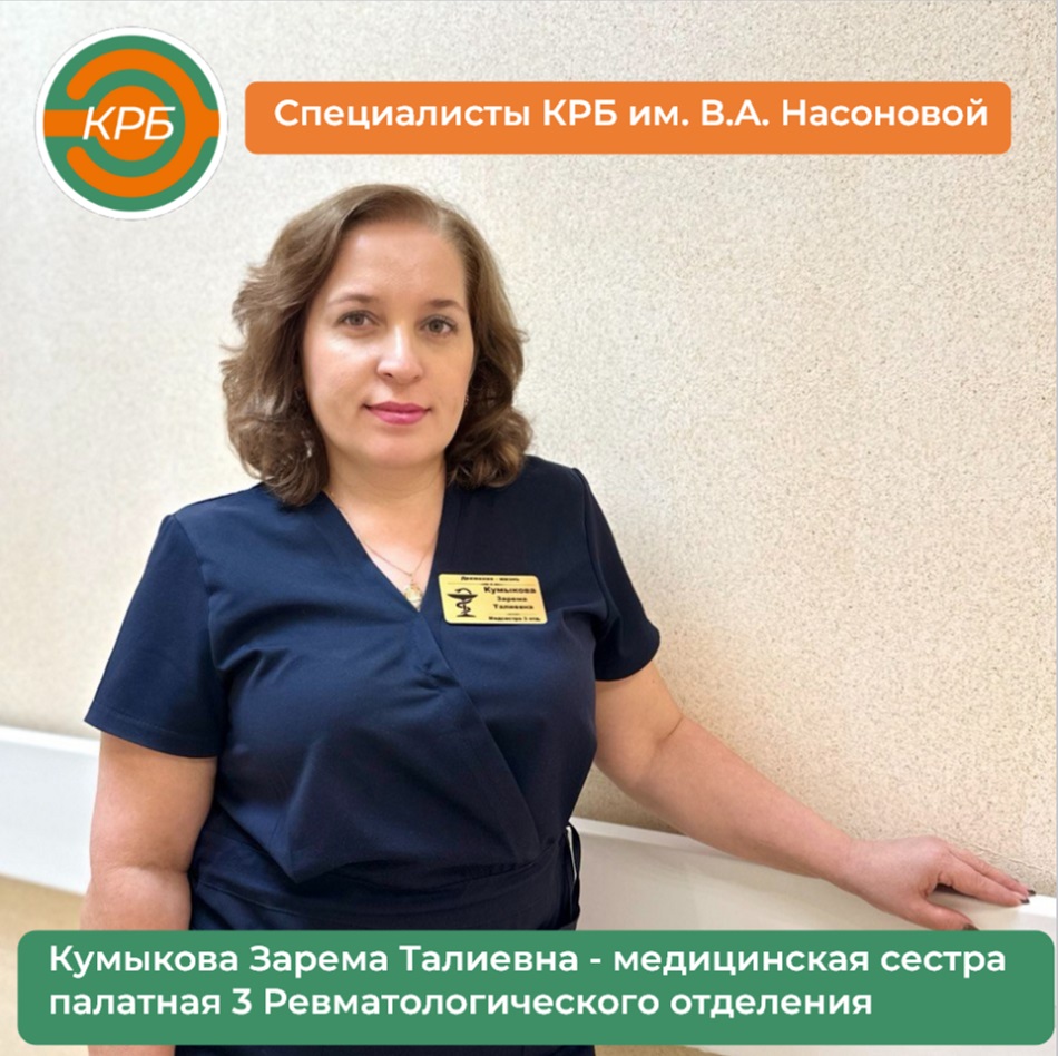 🔹 Сегодня в рубрике «Знакомство со специалистами КРБ им. В.А. Насоновой» хотим познакомить Вас с Кумыковой Заремой Талиевной — медицинской сестрой палатной высшей квалификационной категории.