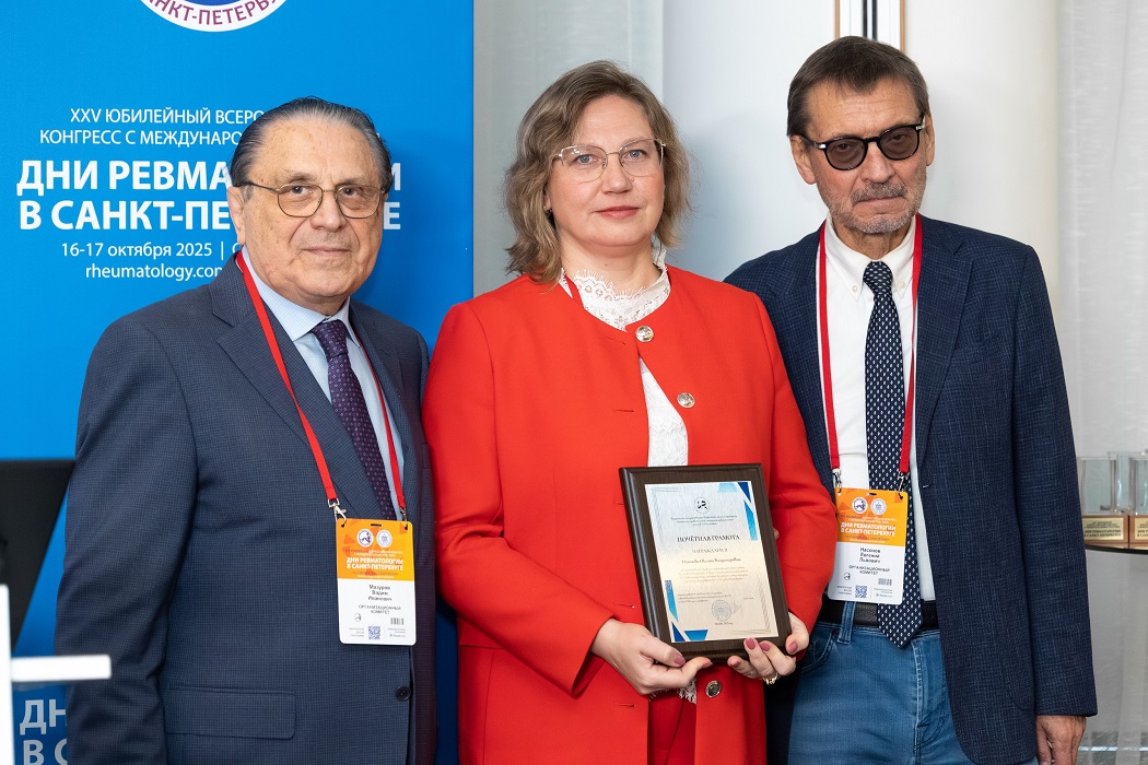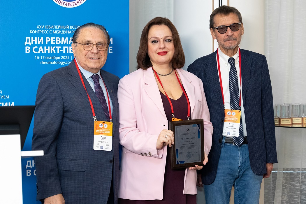 16 октября 2025 г. на XXV Всероссийском конгрессе «Дни ревматологии в Санкт-Петербурге» с в рамках Торжественной церемонии состоялось вручение почетных наград за значительный вклад в развитие ревматологической службы