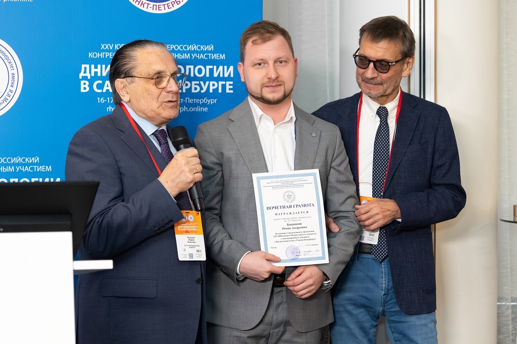 Почётной грамотой за участие в организации и проведении XXV Всероссийского конгресса «Дни ревматологии в Санкт-Петербурге» был удостоен Башкинов Роман Андреевич — к.м.н., врач-ревматолог КРБ им. В.А. Насоновой.